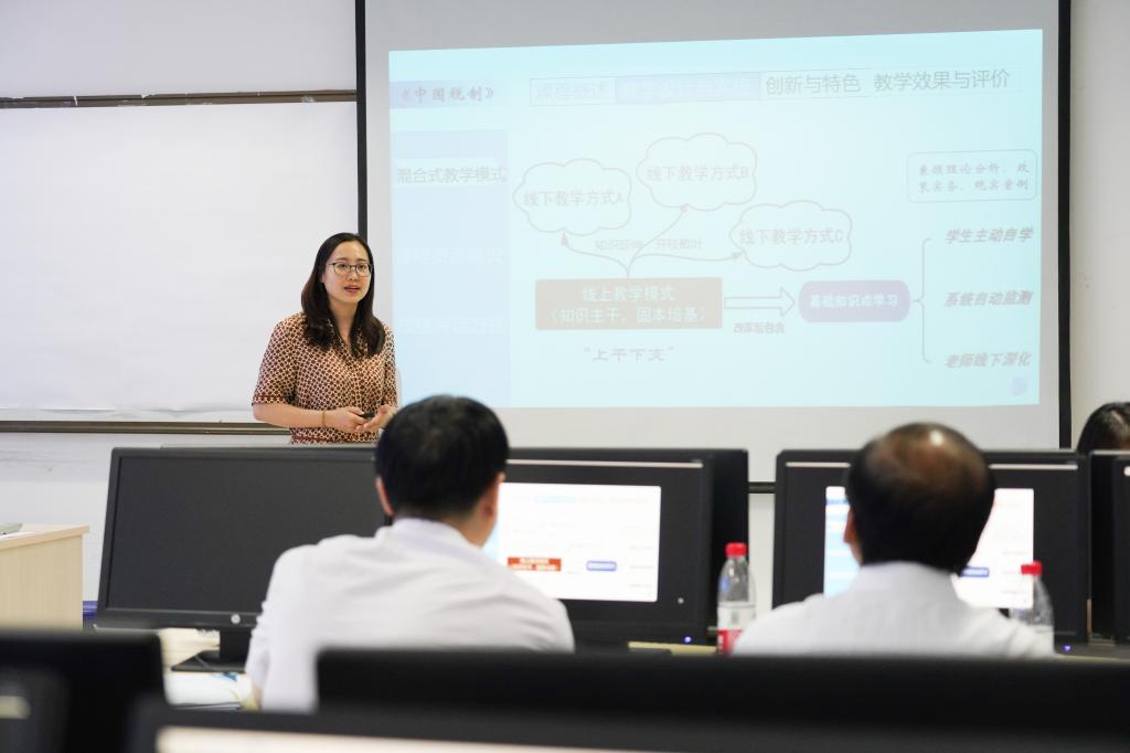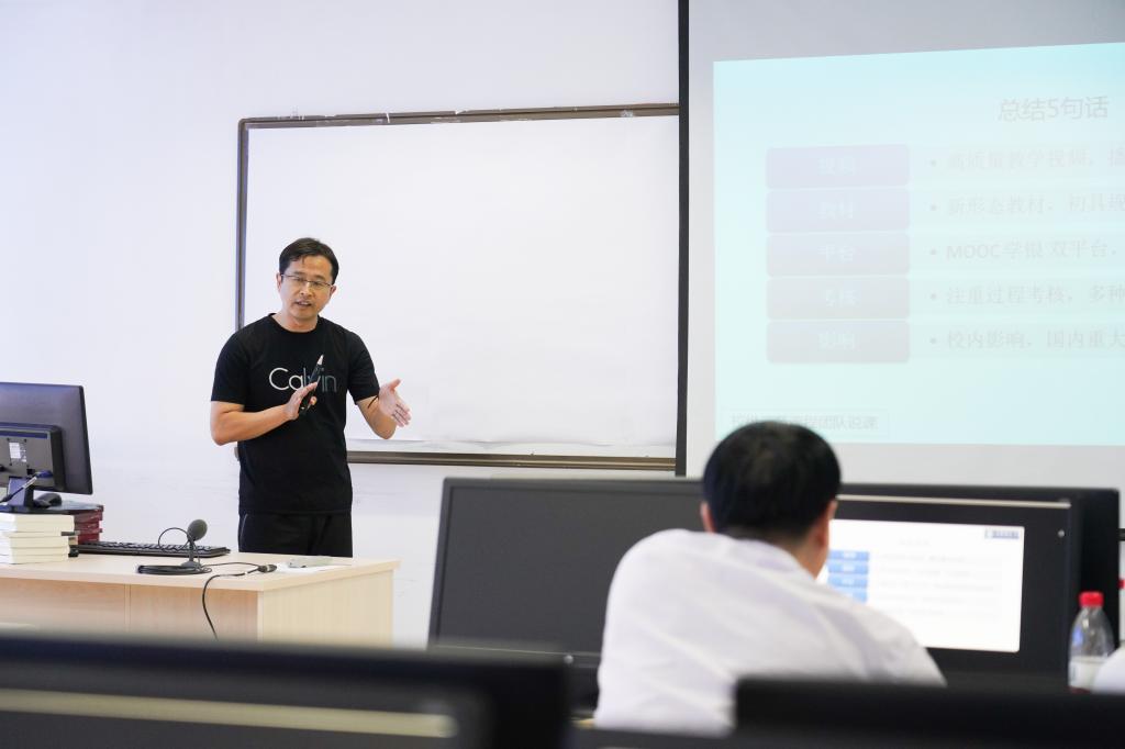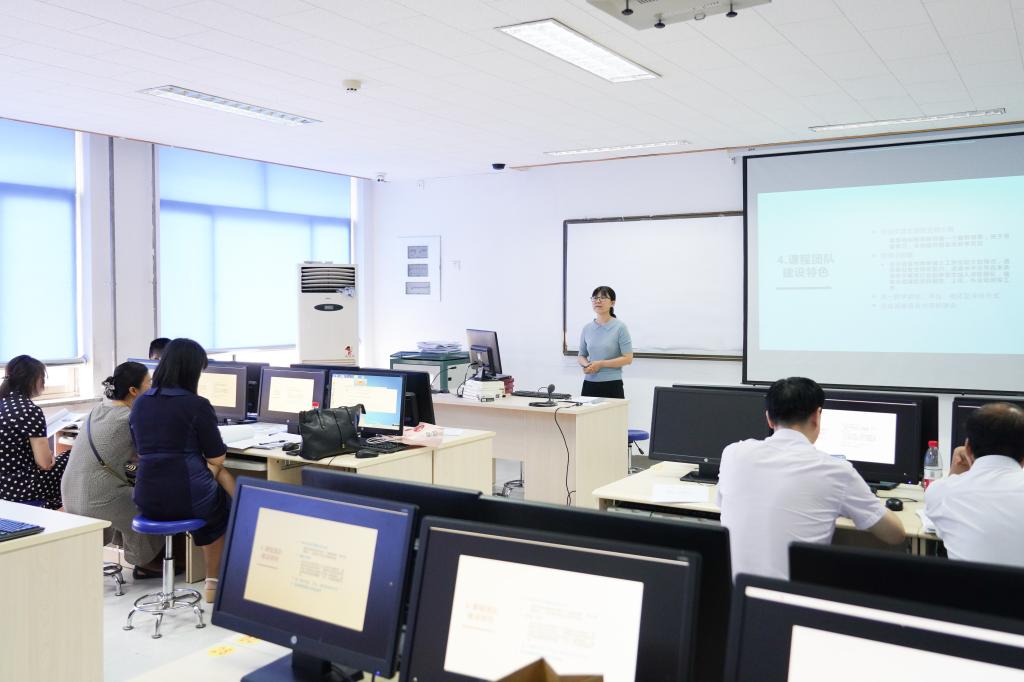 通知发布后,学校老师积极踊跃参与申报,经初评,共有55个课程团队参加说课展示。评审会议现场,各示范课程团队申报负责人围绕课程团队建设、课程思政、混合式教学、过程性考核、教学效果等几方面分别做了精彩的介绍和展示。