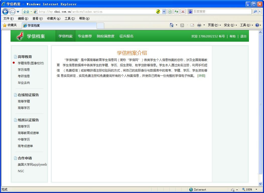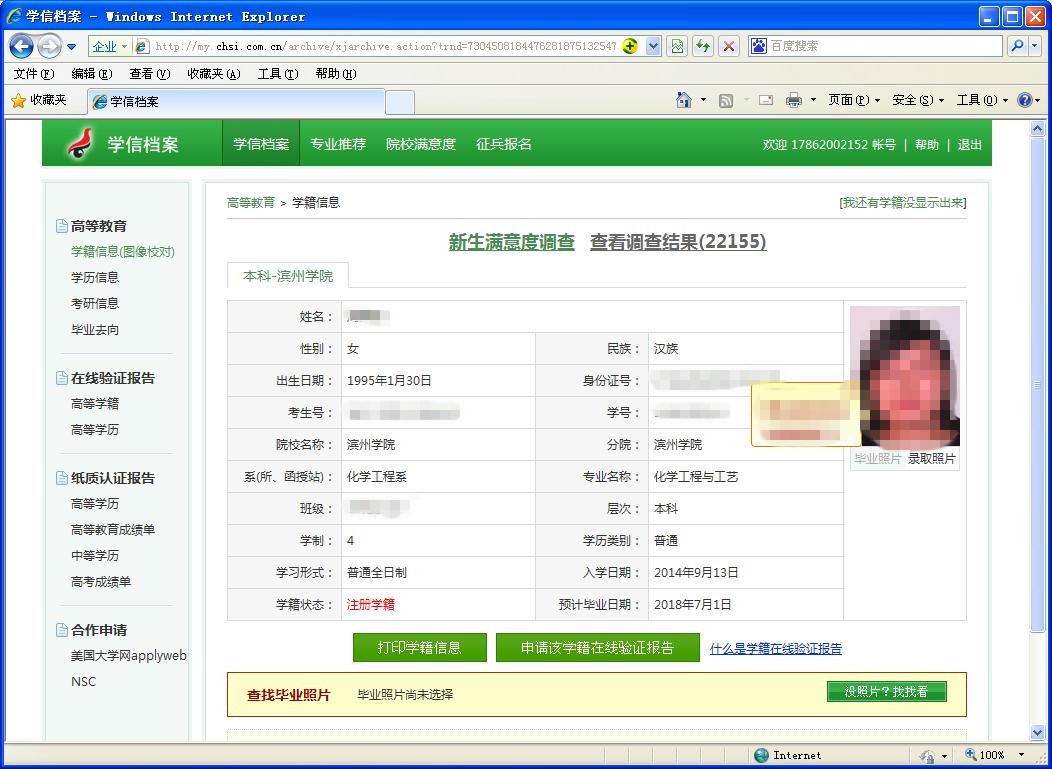 根据教育部及省教育厅的统一安排,全国2017级录取全日制新生的学籍注册工作已全部完成。学信网注册是学生经过录取环节后得到学籍认可的重要标志,学信网的数据是经过教育部认定的,具有法律效应的学生信息,将会做为学生在校期间和毕业学历认定的唯一依据,学生在校期间的所有学籍变动也都会在学信网的个人信息里得到体现。因此及时按照规定进行个人信息的自查,及早发现问题、及时处理问题,将是保证学生个人权益的重要途径。