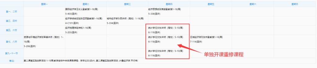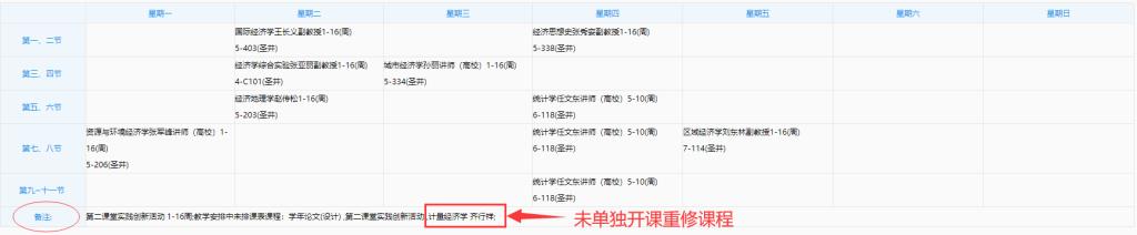 附:学生已报名重修课程在教务管理系统中“学期理论课表”内的显示说明